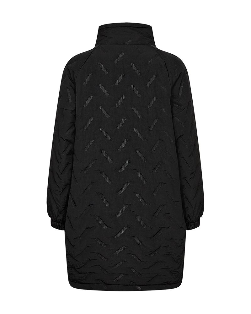 Vatteret jakke fra Freequent i en blød kvalitet med et flot mønster. Jakken er enkel i modellen med lynlåslukning, sidelommer, en høj kravekant, en vid pasform samt lange raglanærmer med elastikkant.