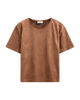 Bluse fra Freequent i en blød og luksuriøs imiteret ruskindskvalitet, der giver et elegant look og en behagelig fornemmelse. Blusen er enkel i modellen med en rund halsudskæring samt korte ærmer med drop shoulders, der understreger den løse pasform.