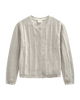 Cardigan fra Freequent i en blød, strikket kvalitet med et flettet mønster, der giver en flot effekt. Derudover har cardiganen lange ærmer, en rund halsudskæring, knaplukning på fronten, ribkanter samt bølgekanter.